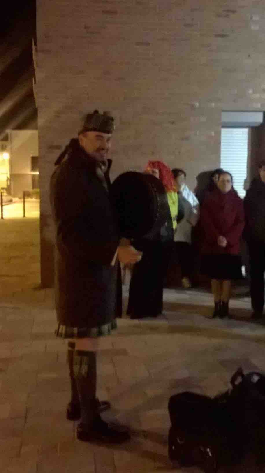 Déambulation contée pour un Halloween irlandais & écossais, à la médiathèque de Bazancourt (51), novembre 2016 - accompagnement à la grande cornemuse et au bodhrán